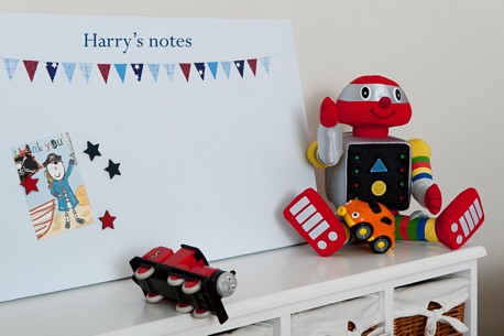 This blue bunting noticeboard will appeal to all little boys and look fantastic in any bedroom, nursery or playroom.